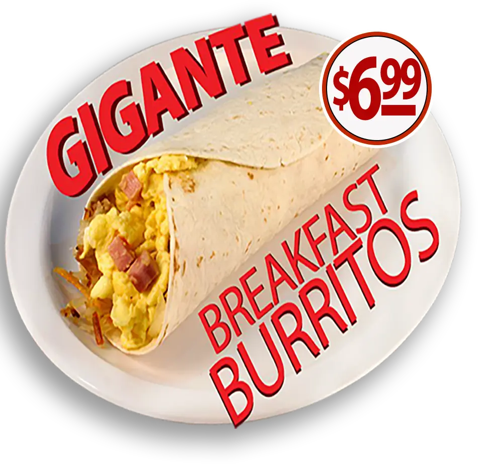 13” FLOUR TORTILLA FILLED WITH EGGS, RANCHERO SAUCE & HASHBROWNS