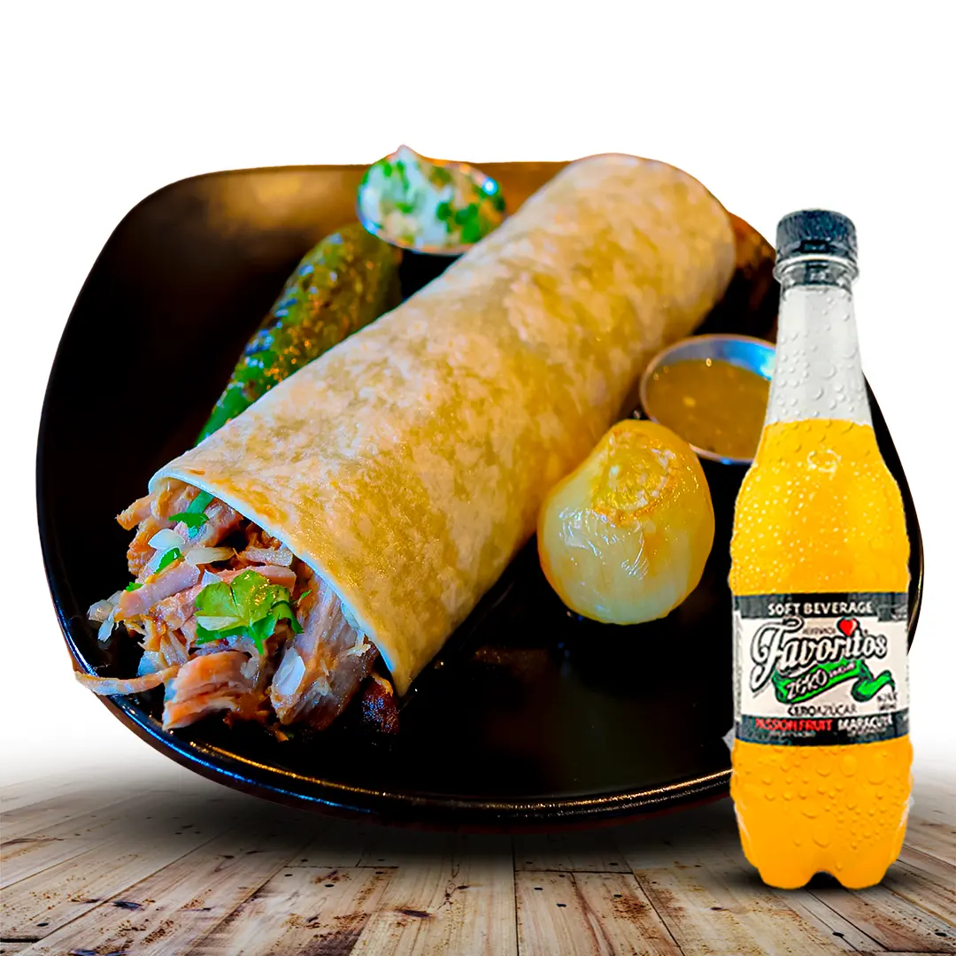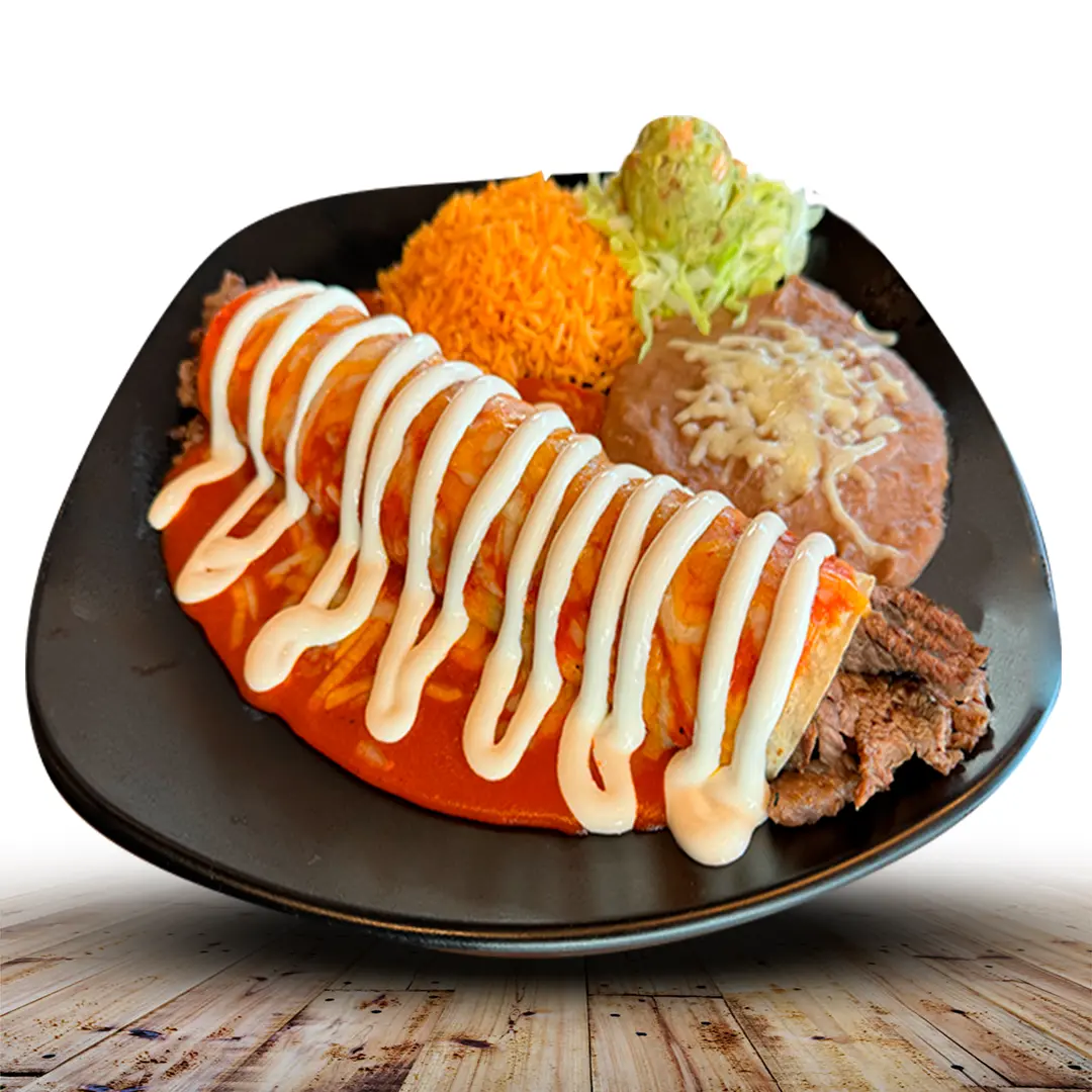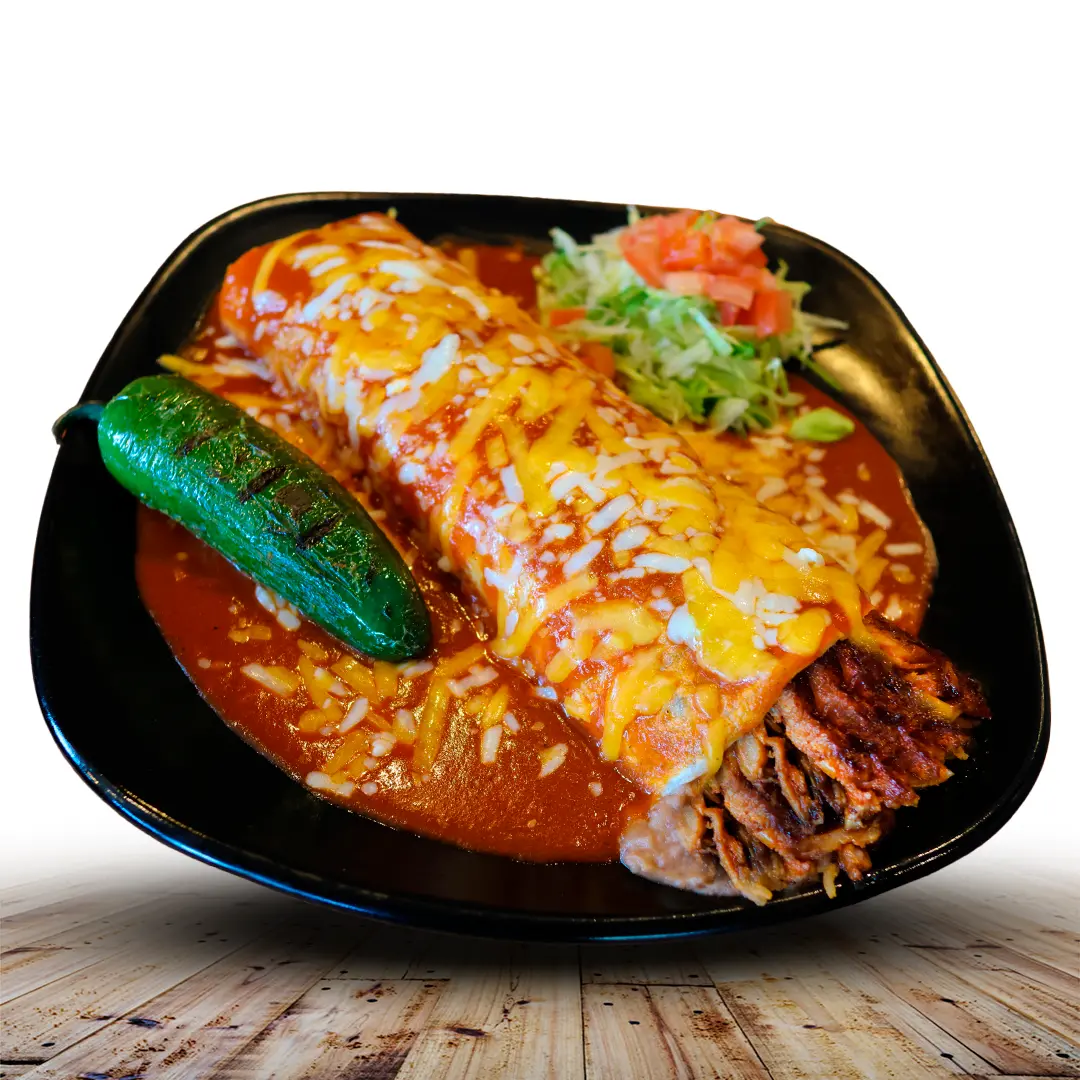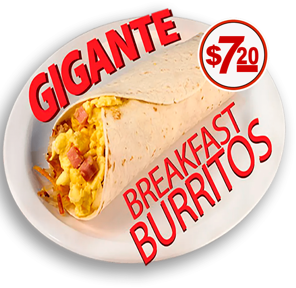 13” FLOUR TORTILLA FILLED WITH EGGS, RANCHERO SAUCE & HASHBROWNS